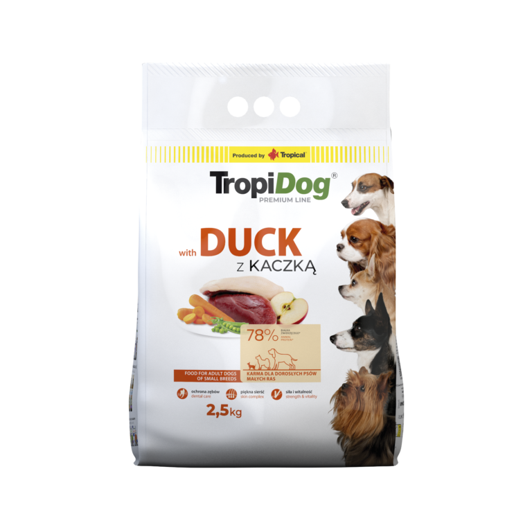 TropiDog Premium Adult SMALL BREEDS – with DUCK and RICE to karma premium